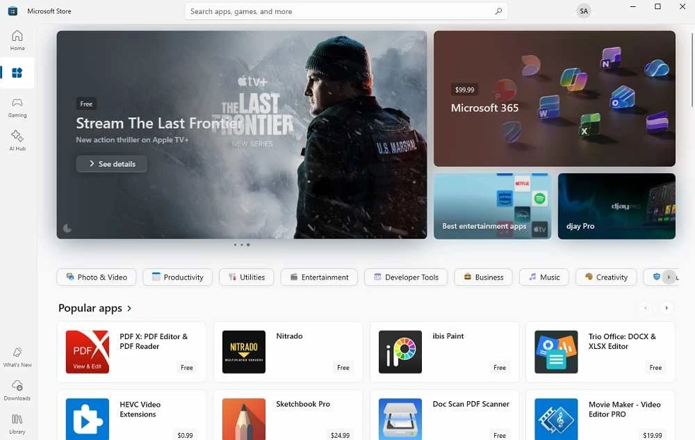 Microsoft Store adalah toko aplikasi resmi dan andal untuk sistem operasi Windows. Toko ini menawarkan beragam koleksi perangkat lunak, gim, dan materi lainnya, yang memungkinkan pengguna Windows mengakses konten yang dibutuhkan dengan andal tanpa perlu mengunjungi toko pihak ketiga mana pun.